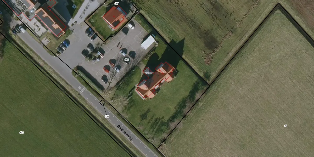 Bakkenweg 14-E is gelegen op kadastraal perceel TEL00R488. Deze kadastrale aanduiding is uniek en wordt gebruikt door het Kadaster om eigendomsrechten en andere zakelijke rechten vast te leggen. Het perceel maakt onderdeel uit van de kadastrale gemeente Texel.