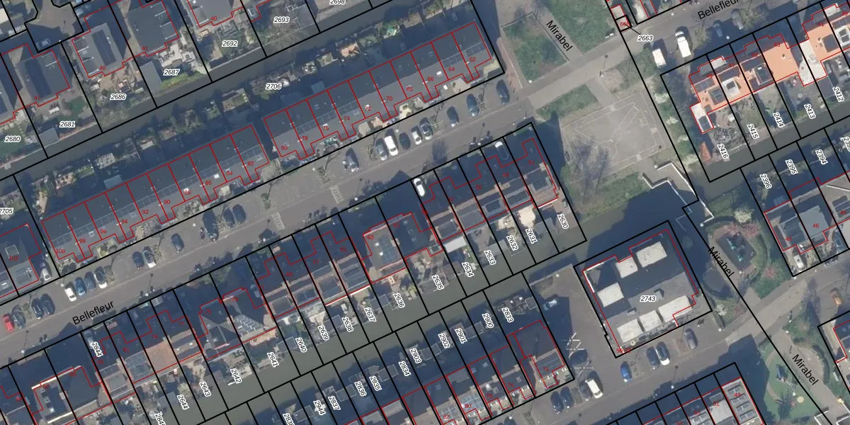 Het perceel waarop Bellefleur 59 staat heeft een oppervlakte van 295 m². Dit is een middelgroot perceel. De perceeloppervlakte wordt geregistreerd door het Kadaster. Gedetailleerde informatie over de maten van dit perceel kunt u vinden in het rapport Kadastrale kaart met maatvoering van Bellefleur 59.