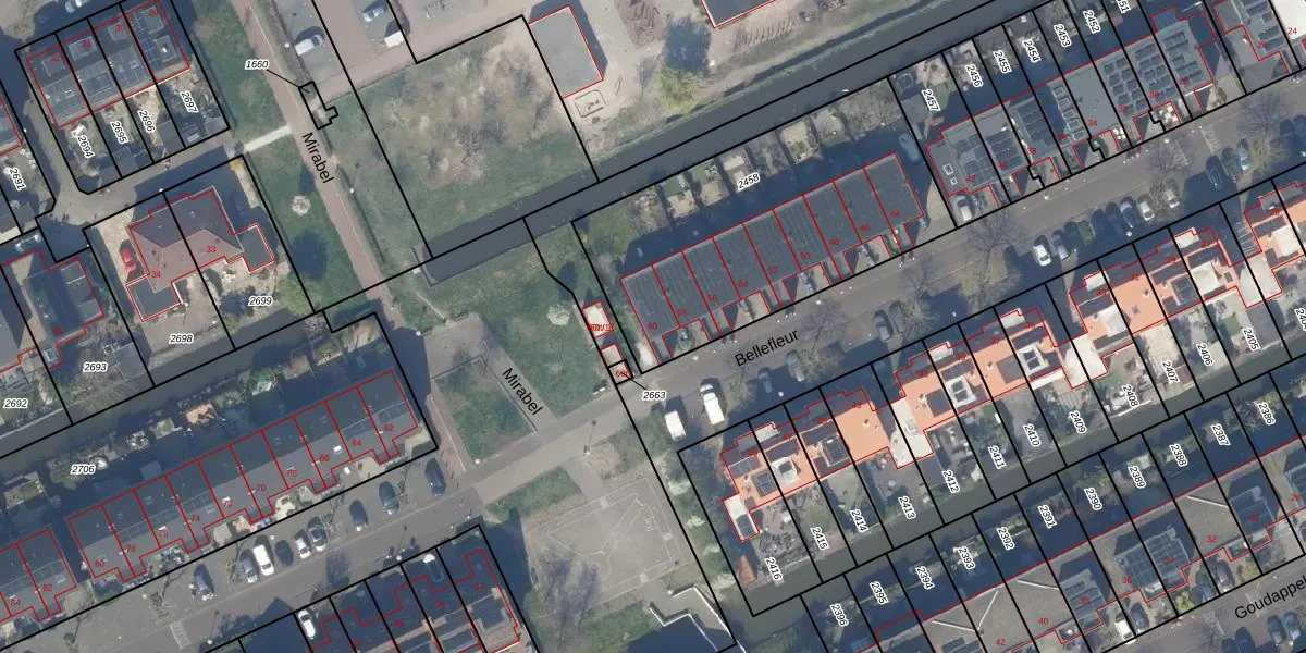 Het perceel waarop Bellefleur 60 staat heeft een oppervlakte van 1363 m². Dit is een zeer groot perceel. De perceeloppervlakte wordt geregistreerd door het Kadaster. Gedetailleerde informatie over de maten van dit perceel kunt u vinden in het rapport Kadastrale kaart met maatvoering van Bellefleur 60.