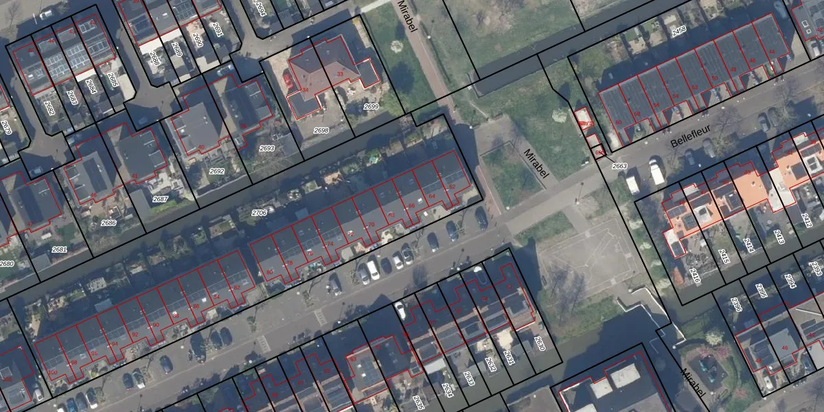 Het perceel waarop Bellefleur 66 staat heeft een oppervlakte van 3040 m². Dit is een zeer groot perceel. De perceeloppervlakte wordt geregistreerd door het Kadaster. Gedetailleerde informatie over de maten van dit perceel kunt u vinden in het rapport Kadastrale kaart met maatvoering van Bellefleur 66.