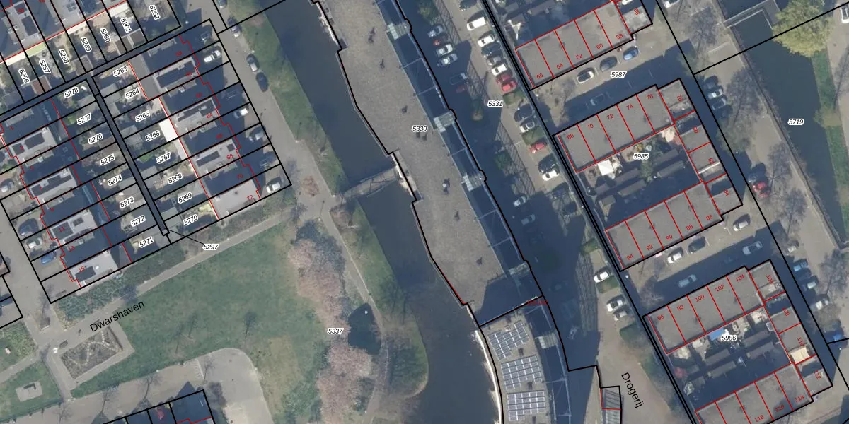 Drogerij 106 is gelegen op kadastraal perceel SLD02I5330. Deze kadastrale aanduiding is uniek en wordt gebruikt door het Kadaster om eigendomsrechten en andere zakelijke rechten vast te leggen. Het perceel maakt onderdeel uit van de kadastrale gemeente Schipluiden.