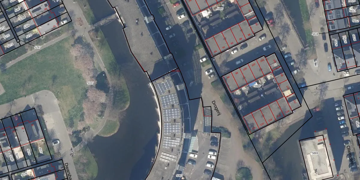 Het perceel waarop Drogerij 140 staat heeft een oppervlakte van 2474 m². Dit is een zeer groot perceel. De perceeloppervlakte wordt geregistreerd door het Kadaster. Gedetailleerde informatie over de maten van dit perceel kunt u vinden in het rapport Kadastrale kaart met maatvoering van Drogerij 140.
