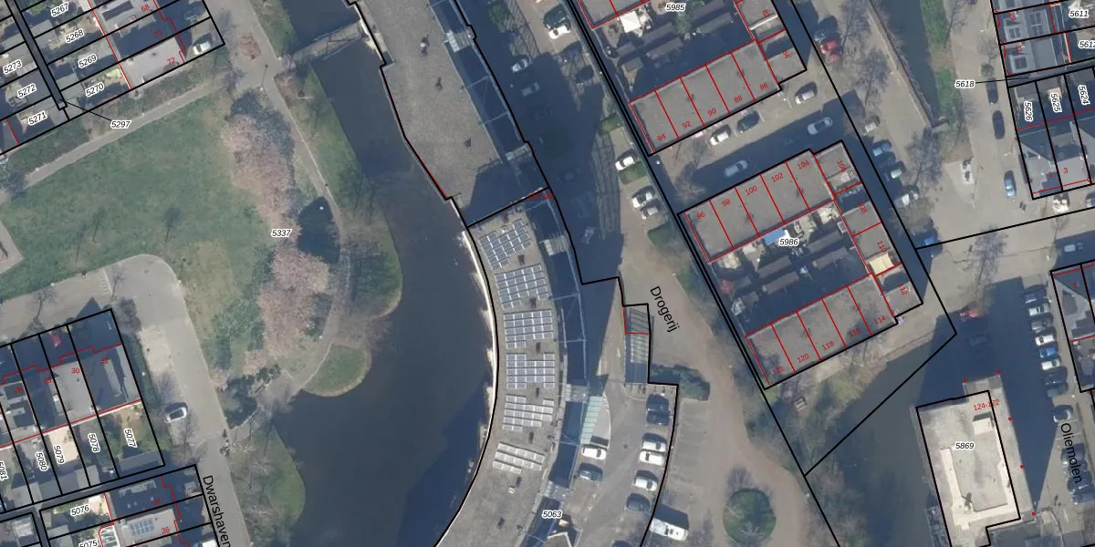 Het perceel waarop Drogerij 142 staat heeft een oppervlakte van 2474 m². Dit is een zeer groot perceel. De perceeloppervlakte wordt geregistreerd door het Kadaster. Gedetailleerde informatie over de maten van dit perceel kunt u vinden in het rapport Kadastrale kaart met maatvoering van Drogerij 142.