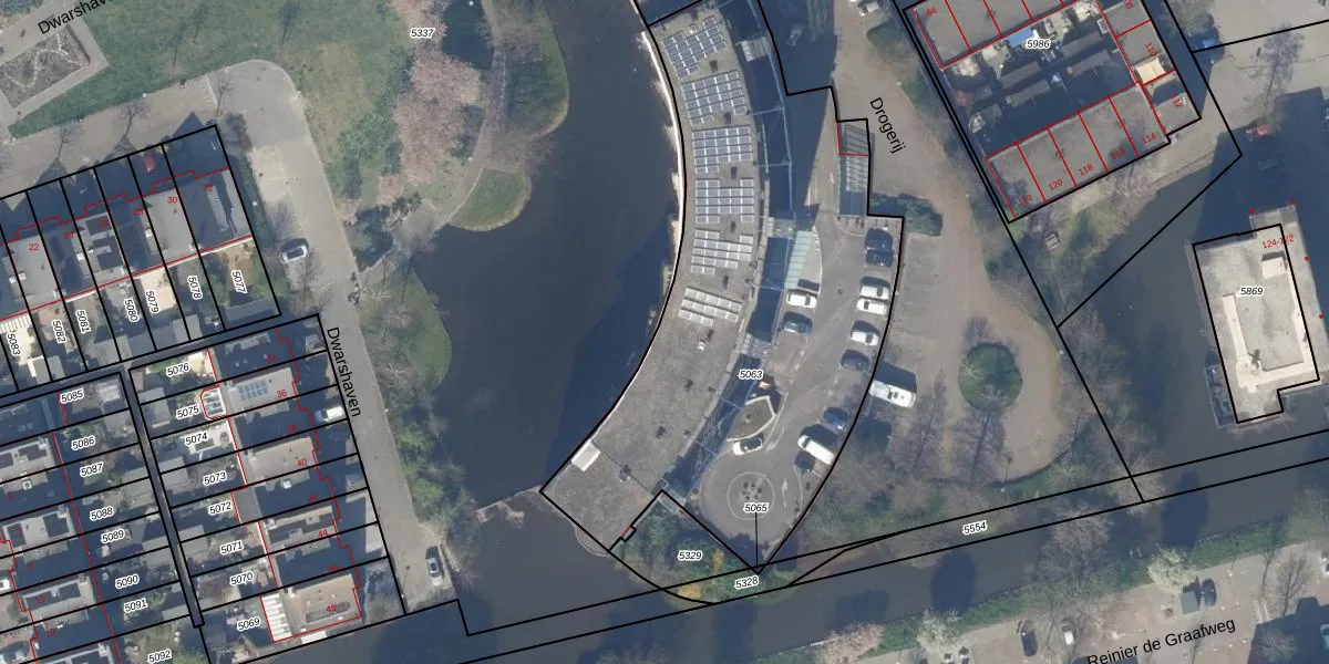 Het perceel waarop Drogerij 164 staat heeft een oppervlakte van 2474 m². Dit is een zeer groot perceel. De perceeloppervlakte wordt geregistreerd door het Kadaster. Gedetailleerde informatie over de maten van dit perceel kunt u vinden in het rapport Kadastrale kaart met maatvoering van Drogerij 164.