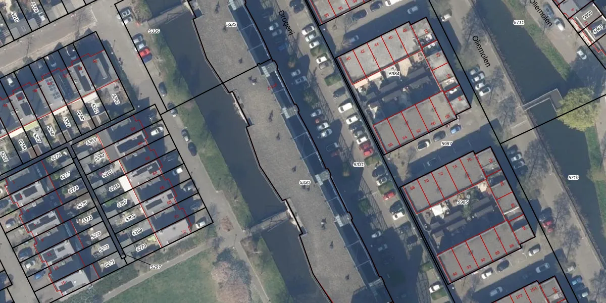 Het perceel waarop Drogerij 30 staat heeft een oppervlakte van 1602 m². Dit is een zeer groot perceel. De perceeloppervlakte wordt geregistreerd door het Kadaster. Gedetailleerde informatie over de maten van dit perceel kunt u vinden in het rapport Kadastrale kaart met maatvoering van Drogerij 30.