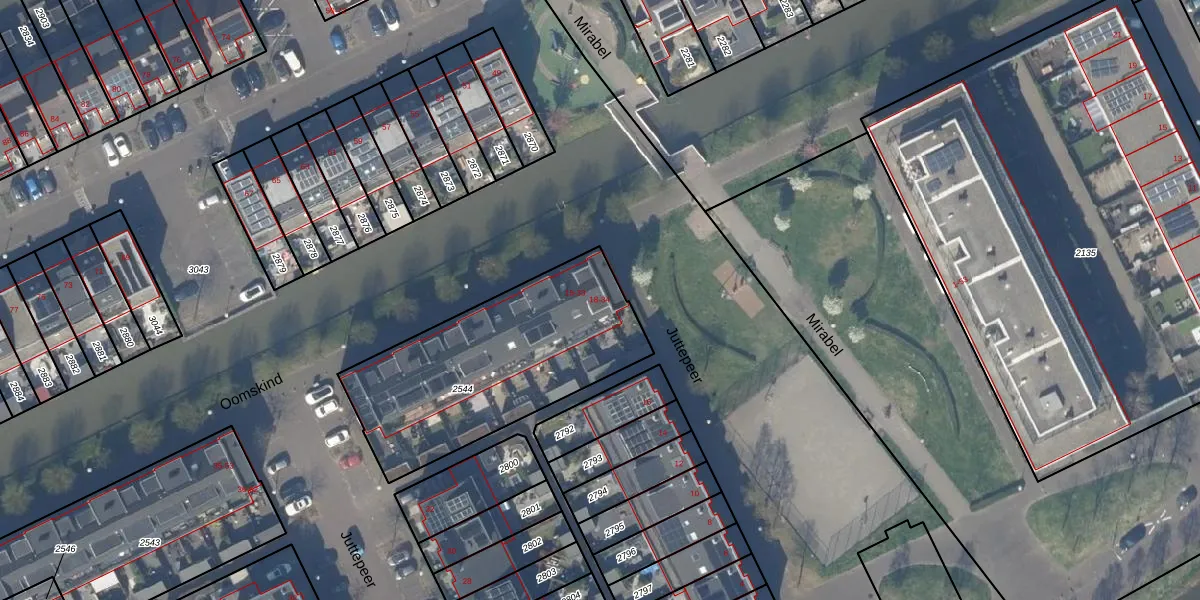 Het perceel waarop Juttepeer 18 staat heeft een oppervlakte van 984 m². Dit is een groot perceel. De perceeloppervlakte wordt geregistreerd door het Kadaster. Gedetailleerde informatie over de maten van dit perceel kunt u vinden in het rapport Kadastrale kaart met maatvoering van Juttepeer 18.