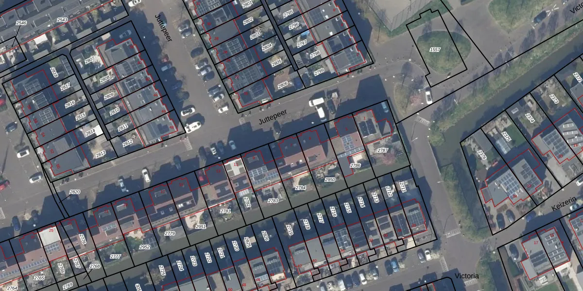 Gebruik de zoekbalk of klik op een perceel voor informatie over de adressen binnen dit perceel.