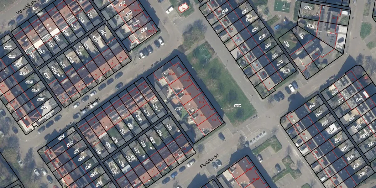 Het perceel waarop Kaasjeskruid 13 staat heeft een oppervlakte van 877 m². Dit is een groot perceel. De perceeloppervlakte wordt geregistreerd door het Kadaster. Gedetailleerde informatie over de maten van dit perceel kunt u vinden in het rapport Kadastrale kaart met maatvoering van Kaasjeskruid 13.