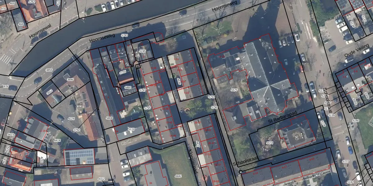 Het adres ligt op het perceel SLD02-I-4436, dat zich in de kadastrale gemeente Schipluiden bevindt. Het perceel is 390 m² groot. Dat is kleiner dan de gemiddelde perceeloppervlakte in Schipluiden, dat op 3583,85 m² ligt. De grootste perceeloppervlakte in de kadastrale gemeente is 45,7 ha. De kleinste oppervlakte bedraagt 0 m². Op het perceel zijn 12 adressen aanwezig. De laatste wijziging in het de Basisregistratie Kadaster (BRK) was op 23-06-2020.