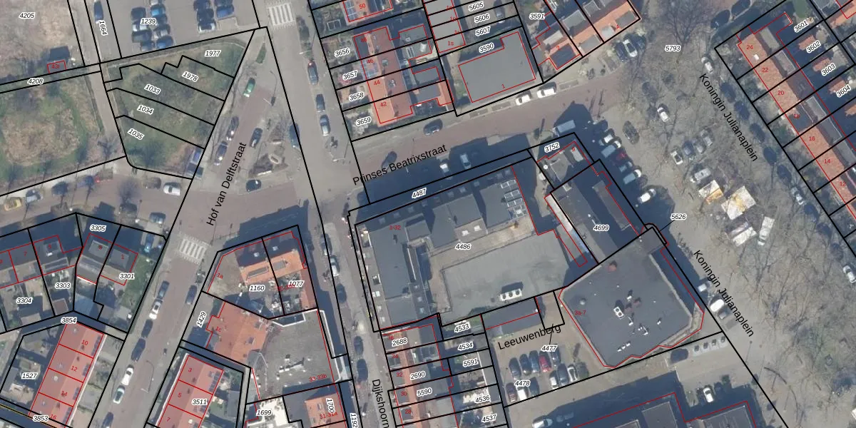 Het adres ligt op het perceel SLD02-I-4486, dat zich in de kadastrale gemeente Schipluiden bevindt. Het perceel is kleiner dan gemiddeld in Schipluiden. Het perceel is 1428 m² groot, terwijl het gemiddelde ligt op 3581,12 m². Het grootste perceel in de kadastrale gemeente is 45,7 ha. Het kleinste perceel heeft een oppervlakte van 0 m². Op het perceel liggen in totaal 17 adressen. In de Basisregistratie Kadaster (BRK) werden de grenzen van het perceel geregistreerd op 10-12-2001.