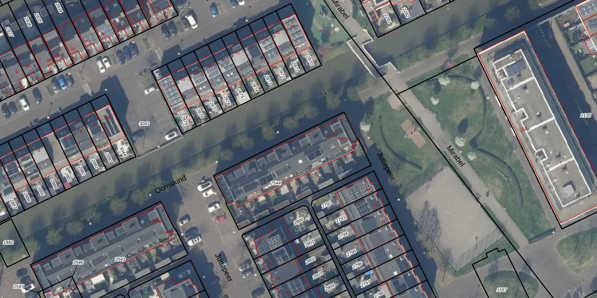Het perceel waarop Oomskind 19 staat heeft een oppervlakte van 984 m². Dit is een groot perceel. De perceeloppervlakte wordt geregistreerd door het Kadaster. Gedetailleerde informatie over de maten van dit perceel kunt u vinden in het rapport Kadastrale kaart met maatvoering van Oomskind 19.