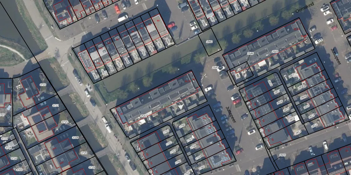 Het perceel waarop Oomskind 59 staat heeft een oppervlakte van 1021 m². Dit is een zeer groot perceel. De perceeloppervlakte wordt geregistreerd door het Kadaster. Gedetailleerde informatie over de maten van dit perceel kunt u vinden in het rapport Kadastrale kaart met maatvoering van Oomskind 59.