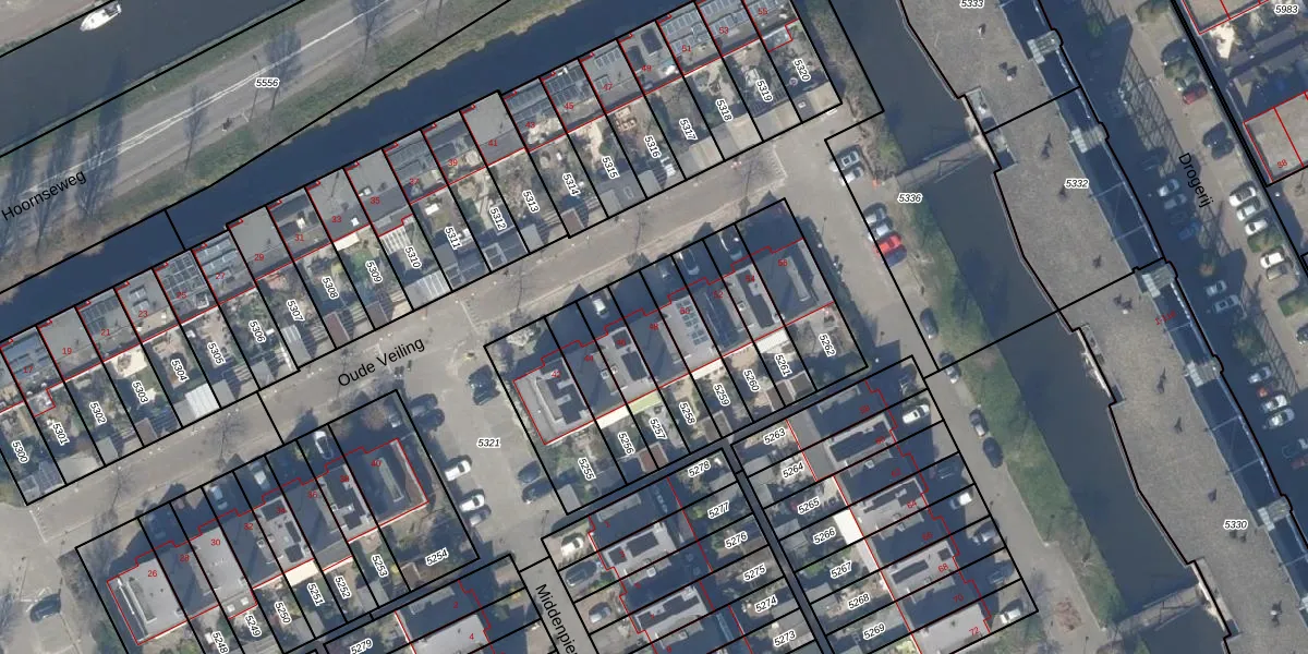 Het perceel waarop Oude Veiling 48 staat heeft een oppervlakte van 155 m². Dit is een middelgroot perceel. De perceeloppervlakte wordt geregistreerd door het Kadaster. Gedetailleerde informatie over de maten van dit perceel kunt u vinden in het rapport Kadastrale kaart met maatvoering van Oude Veiling 48.