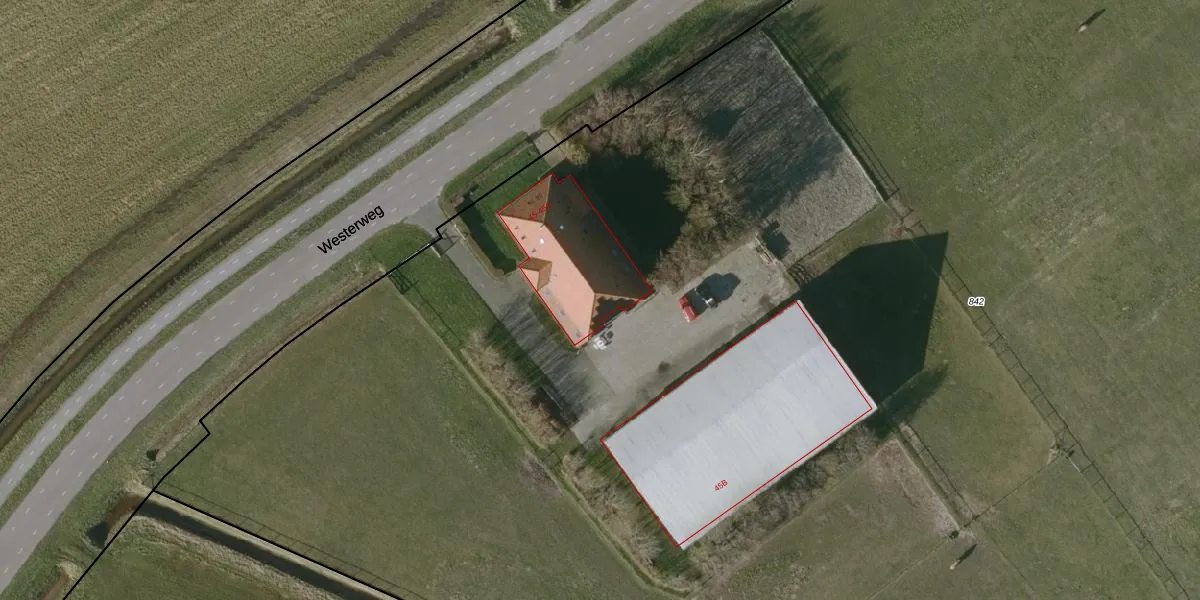 Het perceel waarop Westerweg 45-A staat heeft een oppervlakte van 2,1 ha. Dit is een zeer groot perceel. De perceeloppervlakte wordt geregistreerd door het Kadaster. Gedetailleerde informatie over de maten van dit perceel kunt u vinden in het rapport Kadastrale kaart met maatvoering van Westerweg 45-A.
