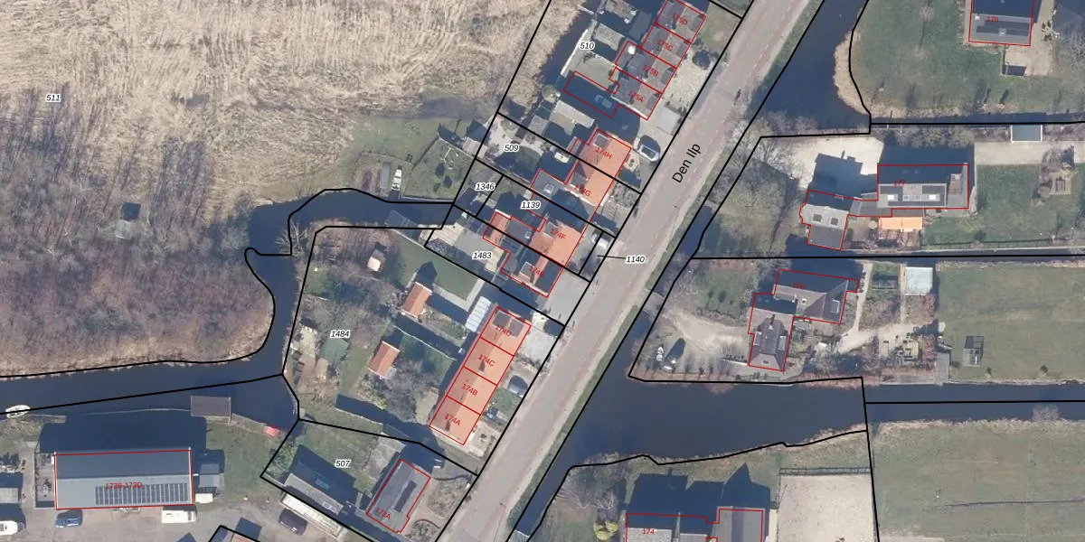 Gebruik de zoekbalk of klik op een perceel voor informatie over de adressen binnen dit perceel.