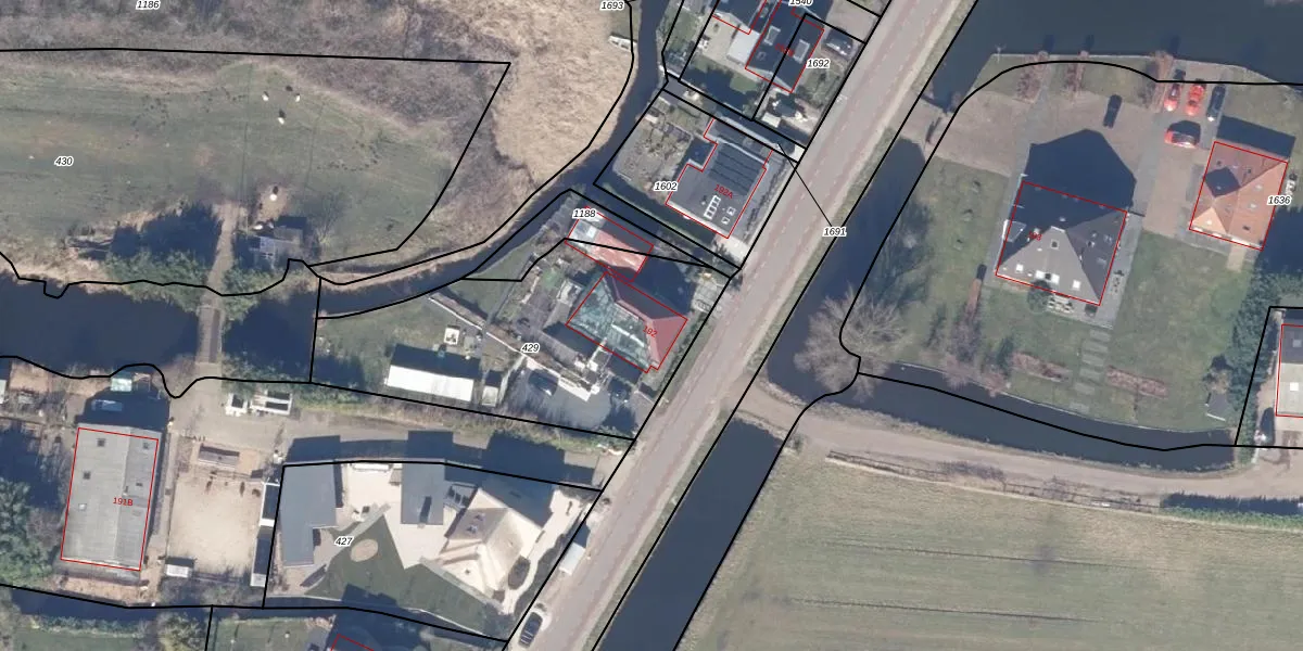 Gebruik de zoekbalk of klik op een perceel voor informatie over de adressen binnen dit perceel.