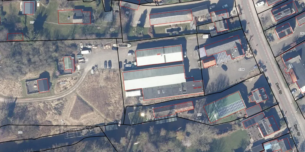 Het perceel waarop Den Ilp 68-B staat heeft een oppervlakte van 2250 m². Dit is een zeer groot perceel. De perceeloppervlakte wordt geregistreerd door het Kadaster. Gedetailleerde informatie over de maten van dit perceel kunt u vinden in het rapport Kadastrale kaart met maatvoering van Den Ilp 68-B.