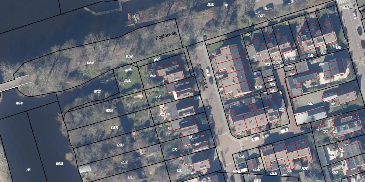 Schoolstraat 33 is gelegen op kadastraal perceel LMR02M945. Deze kadastrale aanduiding is uniek en wordt gebruikt door het Kadaster om eigendomsrechten en andere zakelijke rechten vast te leggen. Het perceel maakt onderdeel uit van de kadastrale gemeente Landsmeer.