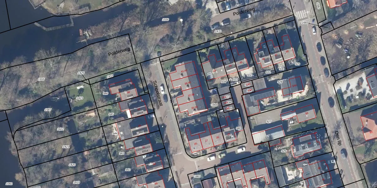 Schoolstraat 38 is gelegen op kadastraal perceel LMR02M1469. Deze kadastrale aanduiding is uniek en wordt gebruikt door het Kadaster om eigendomsrechten en andere zakelijke rechten vast te leggen. Het perceel maakt onderdeel uit van de kadastrale gemeente Landsmeer.