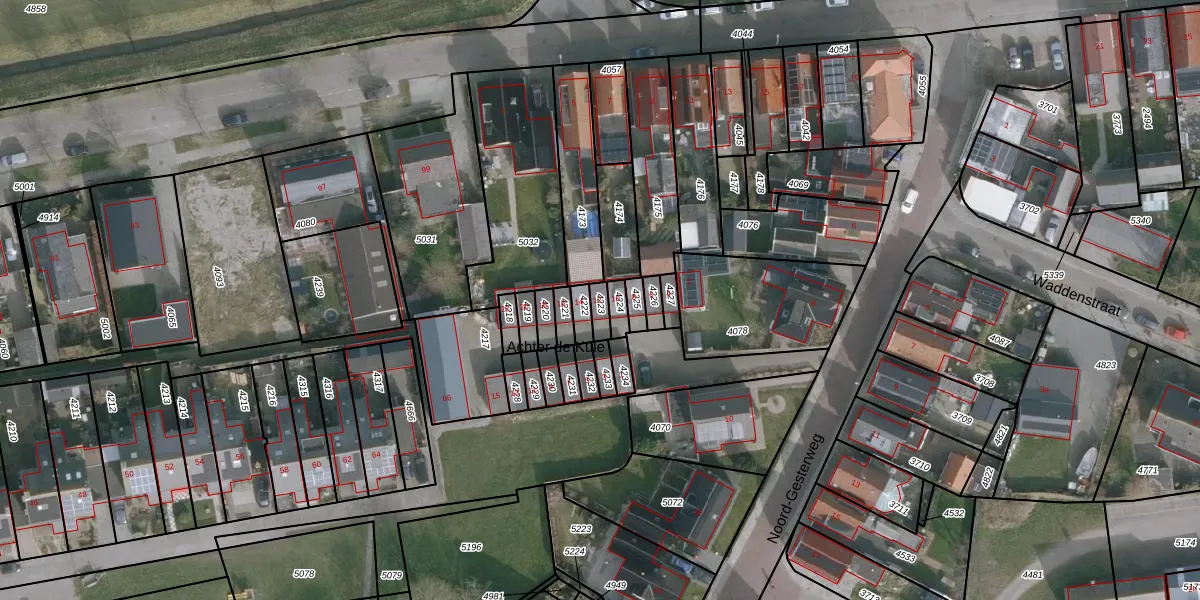 Gebruik de zoekbalk of klik op een perceel voor informatie over de adressen binnen dit perceel.