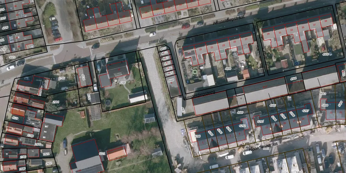 Gebruik de zoekbalk of klik op een perceel voor informatie over de adressen binnen dit perceel.