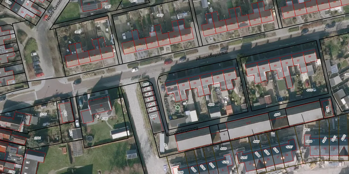 Het perceel waarop Amsteldiepstraat 17 staat heeft een oppervlakte van 1457 m². Dit is een zeer groot perceel. De perceeloppervlakte wordt geregistreerd door het Kadaster. Gedetailleerde informatie over de maten van dit perceel kunt u vinden in het rapport Kadastrale kaart met maatvoering van Amsteldiepstraat 17.