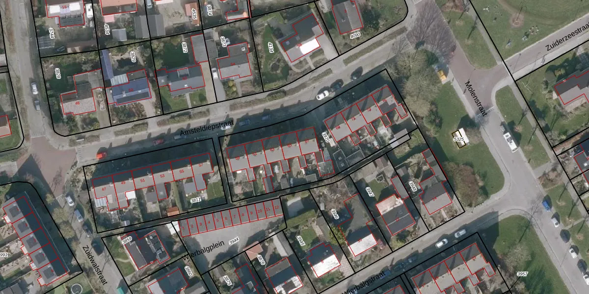 Het perceel waarop Amsteldiepstraat 65 staat heeft een oppervlakte van 1487 m². Dit is een zeer groot perceel. De perceeloppervlakte wordt geregistreerd door het Kadaster. Gedetailleerde informatie over de maten van dit perceel kunt u vinden in het rapport Kadastrale kaart met maatvoering van Amsteldiepstraat 65.