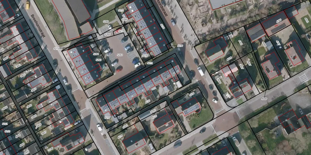 Het perceel waarop Breehornstraat 26 staat heeft een oppervlakte van 825 m². Dit is een groot perceel. De perceeloppervlakte wordt geregistreerd door het Kadaster. Gedetailleerde informatie over de maten van dit perceel kunt u vinden in het rapport Kadastrale kaart met maatvoering van Breehornstraat 26.