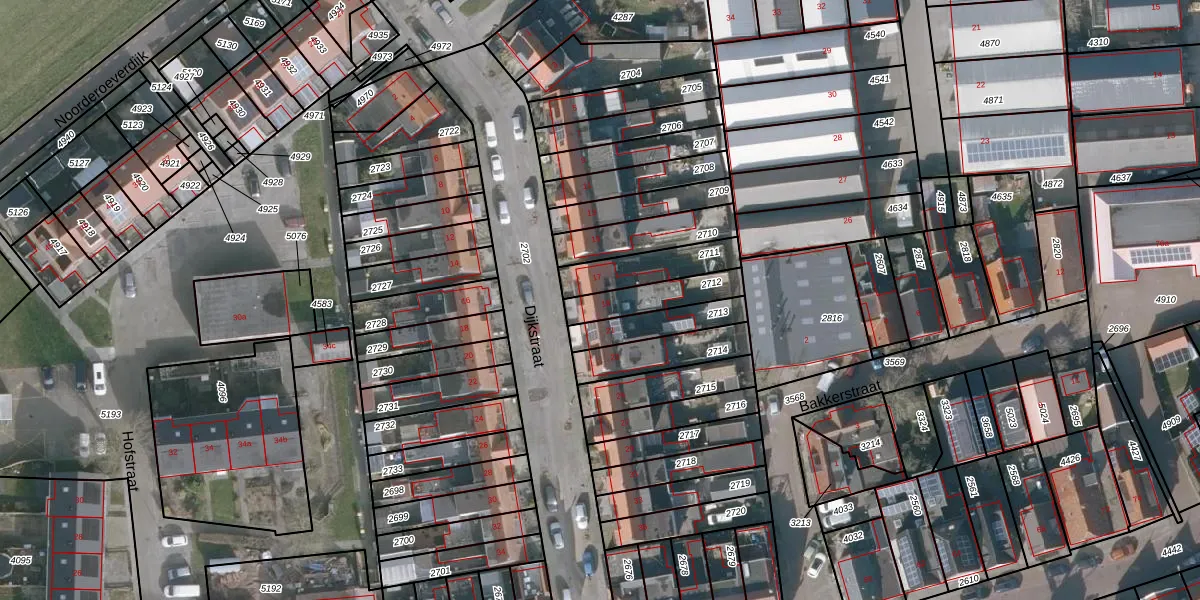 Gebruik de zoekbalk of klik op een perceel voor informatie over de adressen binnen dit perceel.