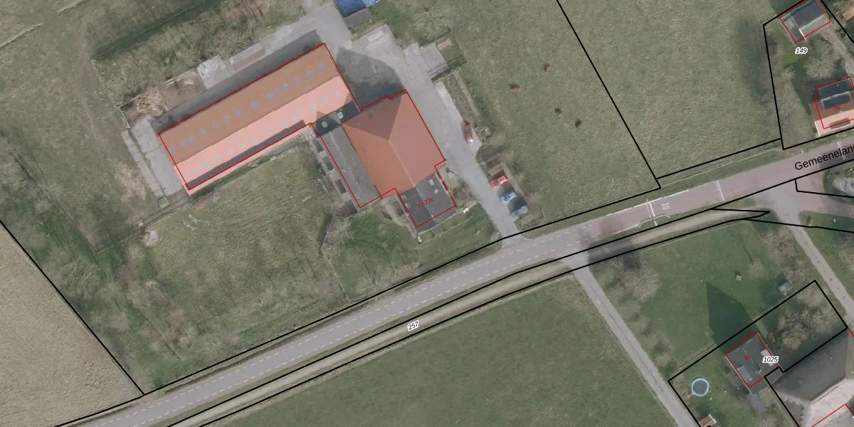 Het perceel waarop Gemeenelandsweg 72 staat heeft een oppervlakte van 2,2 ha. Dit is een zeer groot perceel. De perceeloppervlakte wordt geregistreerd door het Kadaster. Gedetailleerde informatie over de maten van dit perceel kunt u vinden in het rapport Kadastrale kaart met maatvoering van Gemeenelandsweg 72.