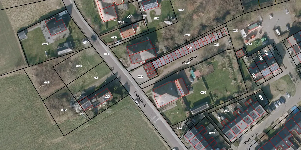 Het perceel waarop Gesterweg 25-c staat heeft een oppervlakte van 175 m². Dit is een middelgroot perceel. De perceeloppervlakte wordt geregistreerd door het Kadaster. Gedetailleerde informatie over de maten van dit perceel kunt u vinden in het rapport Kadastrale kaart met maatvoering van Gesterweg 25-c.