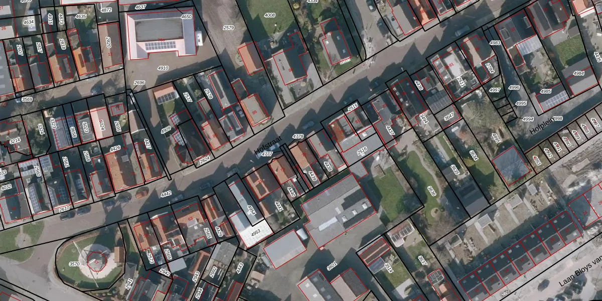 Het perceel waarop Hofstraat 75 staat heeft een oppervlakte van 90 m². Dit is een klein perceel. De perceeloppervlakte wordt geregistreerd door het Kadaster. Gedetailleerde informatie over de maten van dit perceel kunt u vinden in het rapport Kadastrale kaart met maatvoering van Hofstraat 75.