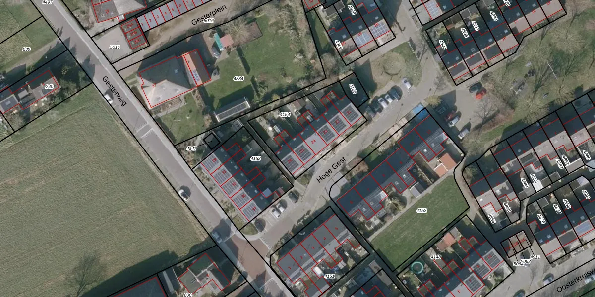 Het perceel waarop Hoge Gest 25 staat heeft een oppervlakte van 658 m². Dit is een groot perceel. De perceeloppervlakte wordt geregistreerd door het Kadaster. Gedetailleerde informatie over de maten van dit perceel kunt u vinden in het rapport Kadastrale kaart met maatvoering van Hoge Gest 25.