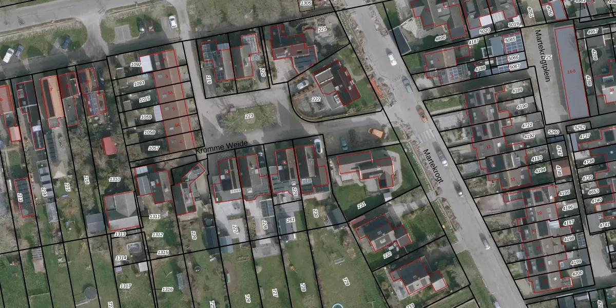 Het perceel waarop Kromme Weide 1 staat heeft een oppervlakte van 318 m². Dit is een groot perceel. De perceeloppervlakte wordt geregistreerd door het Kadaster. Gedetailleerde informatie over de maten van dit perceel kunt u vinden in het rapport Kadastrale kaart met maatvoering van Kromme Weide 1.