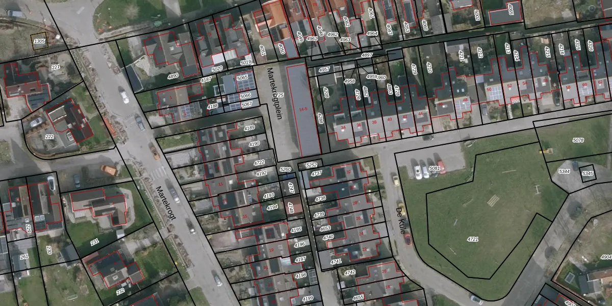 Het perceel waarop Martekrogtplein 1 staat heeft een oppervlakte van 509 m². Dit is een groot perceel. De perceeloppervlakte wordt geregistreerd door het Kadaster. Gedetailleerde informatie over de maten van dit perceel kunt u vinden in het rapport Kadastrale kaart met maatvoering van Martekrogtplein 1.