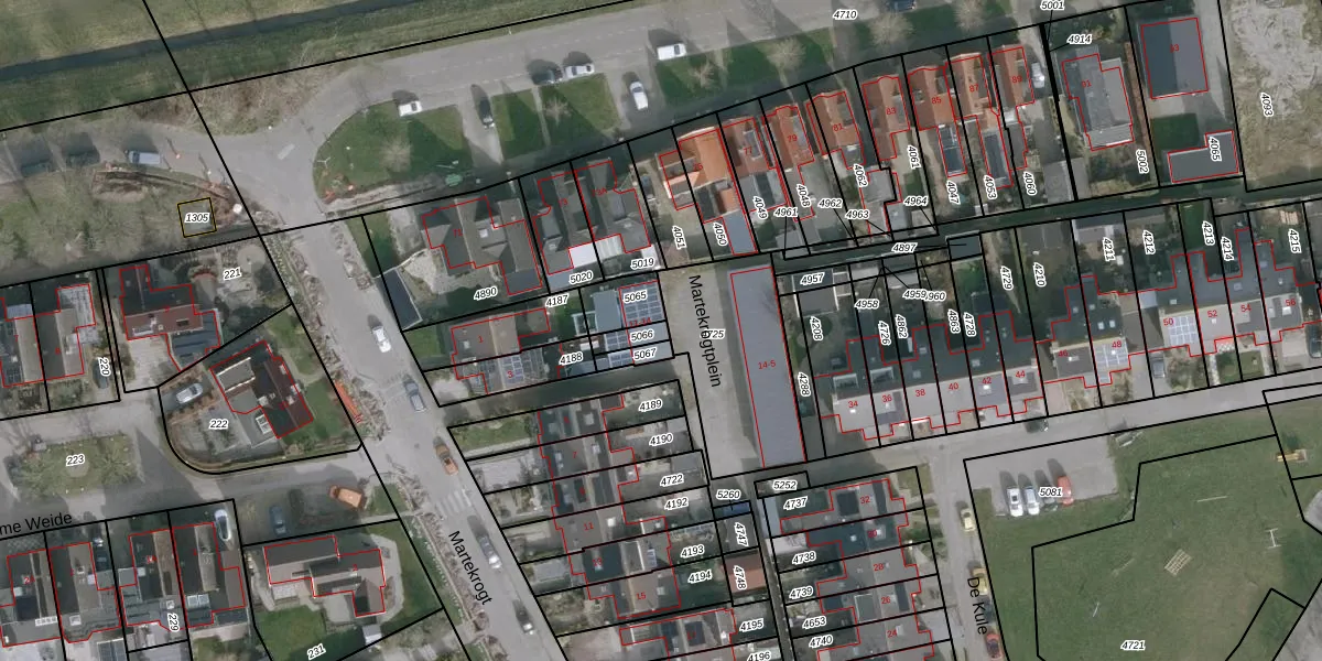 Gebruik de zoekbalk of klik op een perceel voor informatie over de adressen binnen dit perceel.