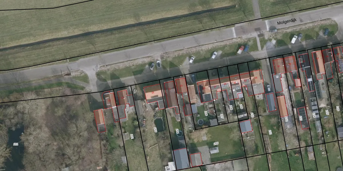 Het perceel waarop Molgerdijk 21 staat heeft een oppervlakte van 434 m². Dit is een groot perceel. De perceeloppervlakte wordt geregistreerd door het Kadaster. Gedetailleerde informatie over de maten van dit perceel kunt u vinden in het rapport Kadastrale kaart met maatvoering van Molgerdijk 21.