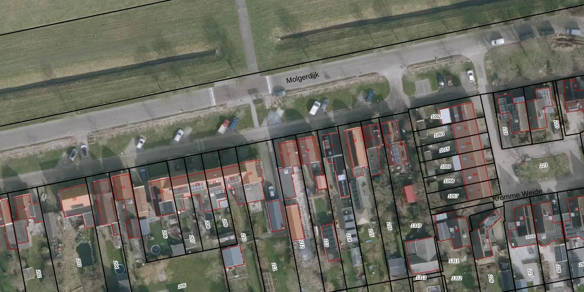 Het perceel waarop Molgerdijk 37 staat heeft een oppervlakte van 441 m². Dit is een groot perceel. De perceeloppervlakte wordt geregistreerd door het Kadaster. Gedetailleerde informatie over de maten van dit perceel kunt u vinden in het rapport Kadastrale kaart met maatvoering van Molgerdijk 37.