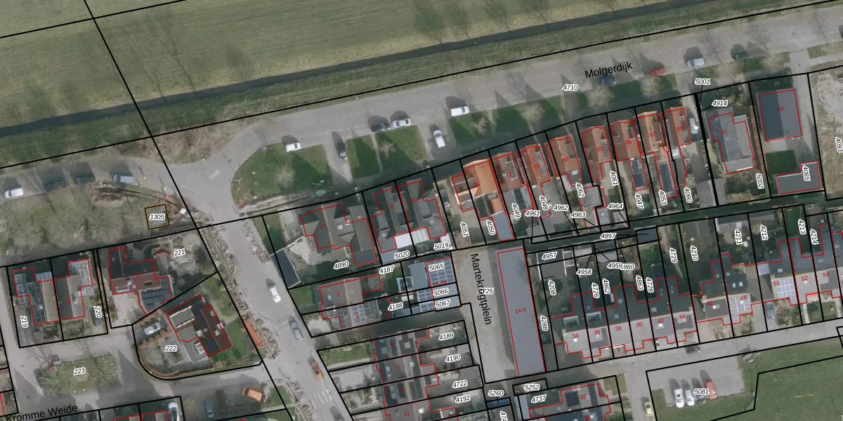 Het perceel waarop Molgerdijk 73-a staat heeft een oppervlakte van 180 m². Dit is een middelgroot perceel. De perceeloppervlakte wordt geregistreerd door het Kadaster. Gedetailleerde informatie over de maten van dit perceel kunt u vinden in het rapport Kadastrale kaart met maatvoering van Molgerdijk 73-a.