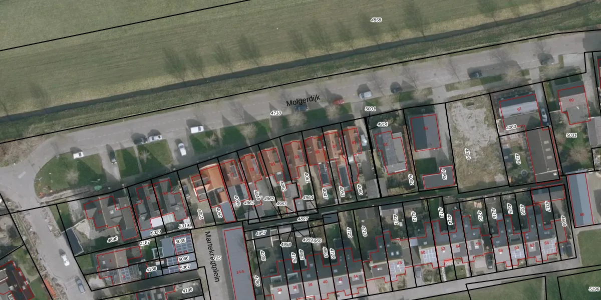 Het perceel waarop Molgerdijk 83 staat heeft een oppervlakte van 178 m². Dit is een middelgroot perceel. De perceeloppervlakte wordt geregistreerd door het Kadaster. Gedetailleerde informatie over de maten van dit perceel kunt u vinden in het rapport Kadastrale kaart met maatvoering van Molgerdijk 83.