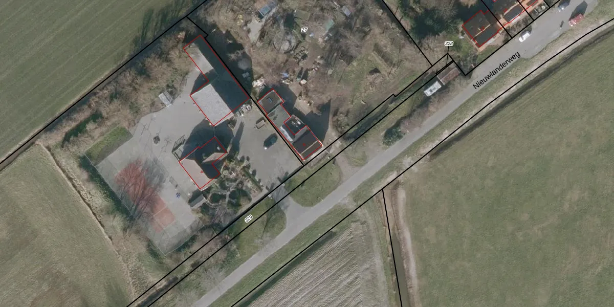 Het perceel waarop Nieuwlanderweg 8 staat heeft een oppervlakte van 3305 m². Dit is een zeer groot perceel. De perceeloppervlakte wordt geregistreerd door het Kadaster. Gedetailleerde informatie over de maten van dit perceel kunt u vinden in het rapport Kadastrale kaart met maatvoering van Nieuwlanderweg 8.
