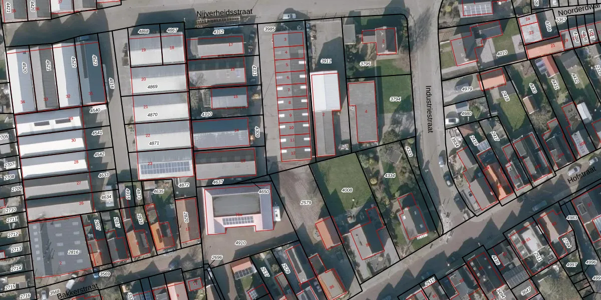 Het perceel waarop Nijverheidsstraat 12 staat heeft een oppervlakte van 797 m². Dit is een groot perceel. De perceeloppervlakte wordt geregistreerd door het Kadaster. Gedetailleerde informatie over de maten van dit perceel kunt u vinden in het rapport Kadastrale kaart met maatvoering van Nijverheidsstraat 12.