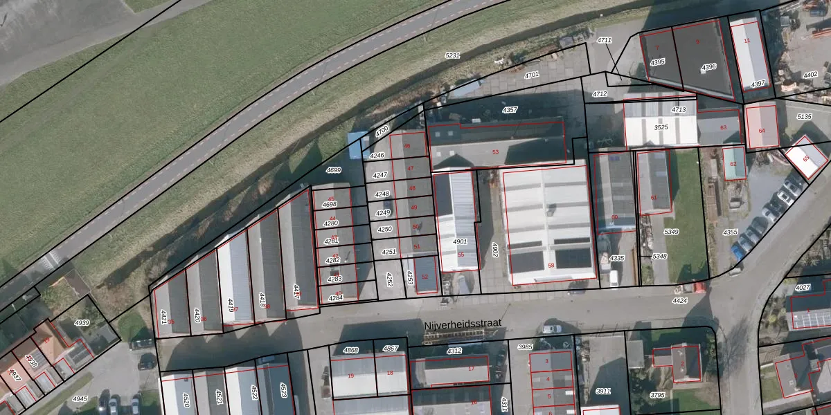 Het perceel waarop Nijverheidsstraat 49 staat heeft een oppervlakte van 73 m². Dit is een klein perceel. De perceeloppervlakte wordt geregistreerd door het Kadaster. Gedetailleerde informatie over de maten van dit perceel kunt u vinden in het rapport Kadastrale kaart met maatvoering van Nijverheidsstraat 49.