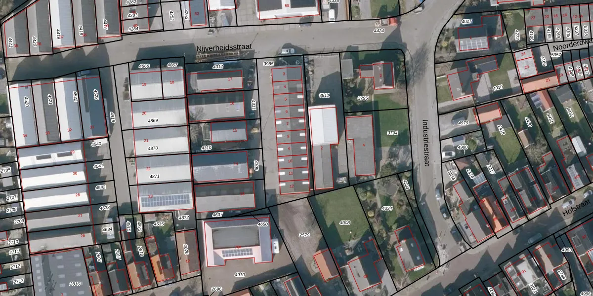 Het perceel waarop Nijverheidsstraat 9 staat heeft een oppervlakte van 797 m². Dit is een groot perceel. De perceeloppervlakte wordt geregistreerd door het Kadaster. Gedetailleerde informatie over de maten van dit perceel kunt u vinden in het rapport Kadastrale kaart met maatvoering van Nijverheidsstraat 9.