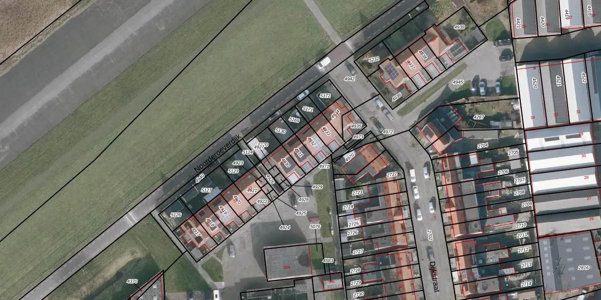 Het perceel waarop Noorderoeverdijk 33 staat heeft een oppervlakte van 74 m². Dit is een klein perceel. De perceeloppervlakte wordt geregistreerd door het Kadaster. Gedetailleerde informatie over de maten van dit perceel kunt u vinden in het rapport Kadastrale kaart met maatvoering van Noorderoeverdijk 33.