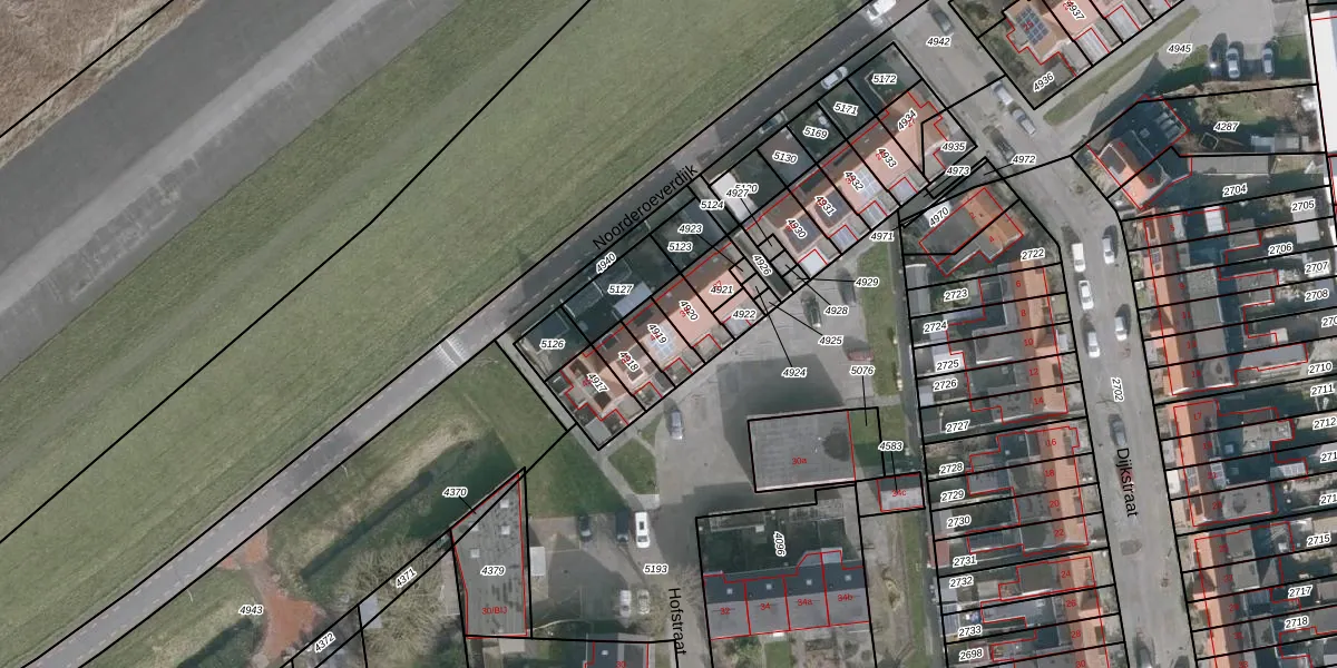 Het perceel waarop Noorderoeverdijk 41 staat heeft een oppervlakte van 74 m². Dit is een klein perceel. De perceeloppervlakte wordt geregistreerd door het Kadaster. Gedetailleerde informatie over de maten van dit perceel kunt u vinden in het rapport Kadastrale kaart met maatvoering van Noorderoeverdijk 41.