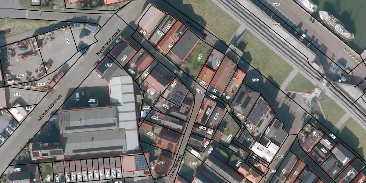 Gebruik de zoekbalk of klik op een perceel voor informatie over de adressen binnen dit perceel.