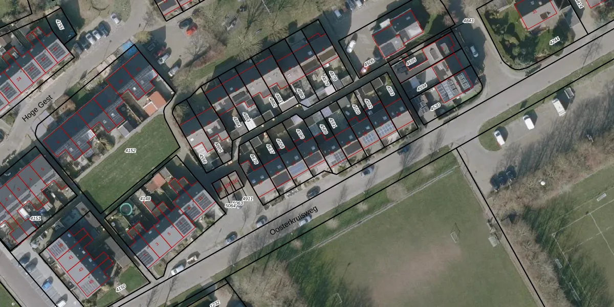 Gebruik de zoekbalk of klik op een perceel voor informatie over de adressen binnen dit perceel.