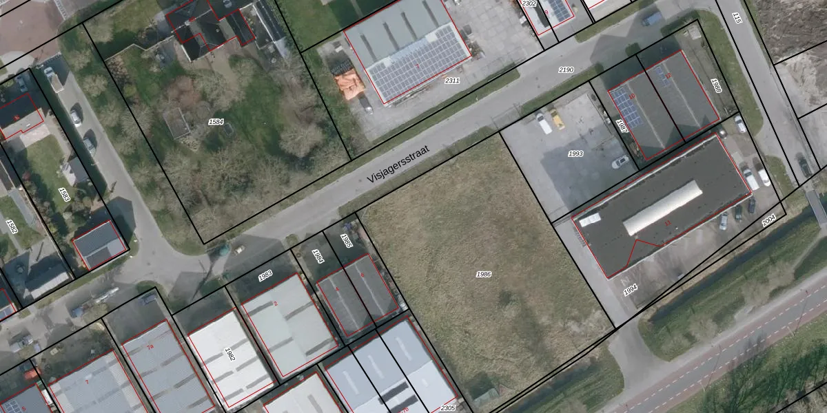 Het perceel waarop Visjagersstraat 8-a staat heeft een oppervlakte van 2277 m². Dit is een zeer groot perceel. De perceeloppervlakte wordt geregistreerd door het Kadaster. Gedetailleerde informatie over de maten van dit perceel kunt u vinden in het rapport Kadastrale kaart met maatvoering van Visjagersstraat 8-a.