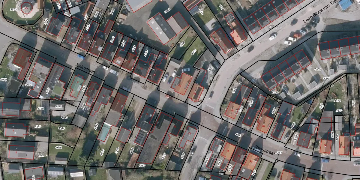 Het perceel waarop Zwinstraat 22 staat heeft een oppervlakte van 477 m². Dit is een groot perceel. De perceeloppervlakte wordt geregistreerd door het Kadaster. Gedetailleerde informatie over de maten van dit perceel kunt u vinden in het rapport Kadastrale kaart met maatvoering van Zwinstraat 22.